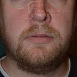 33 year-old male patient received a FUT ( strip method) hair transplant to his beard. After photos were taken 8 months post surgery.